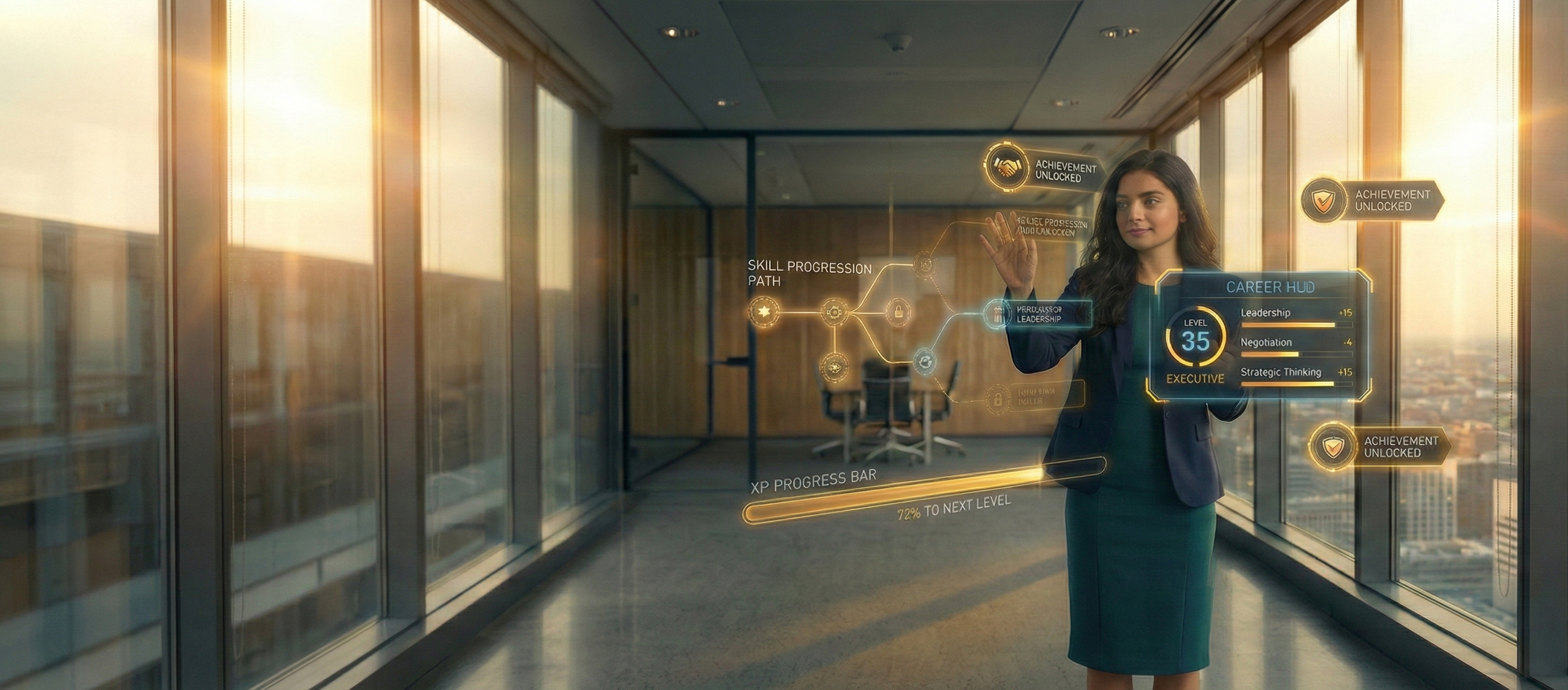 XP, skill trees, achievements. Training that feels like progression, not obligation.